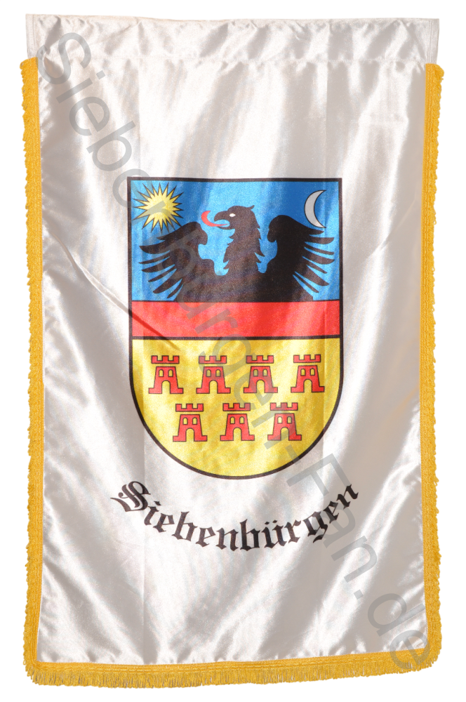Dieses edle Banner zeigt das historische Wappen von Siebenbürgen auf weißem Grund und verbindet traditionelle Symbolik mit moderner Verarbeitung. Das Material besticht mit einem brillanten Druck durch glänzende, leuchtende Farben, die das Wappen lebendig wirken lassen. Die gelben Fransen rundum unterstreichen den festlichen Charakter und machen die Fahne zu einem Blickfang bei kulturellen Veranstaltungen, Gedenktagen oder als Wanddekoration.