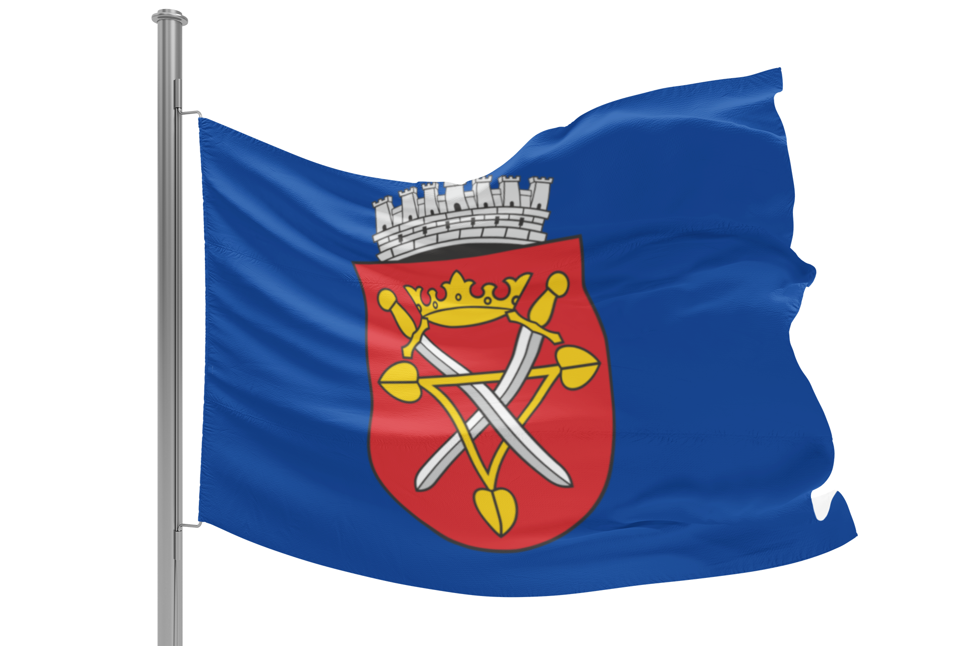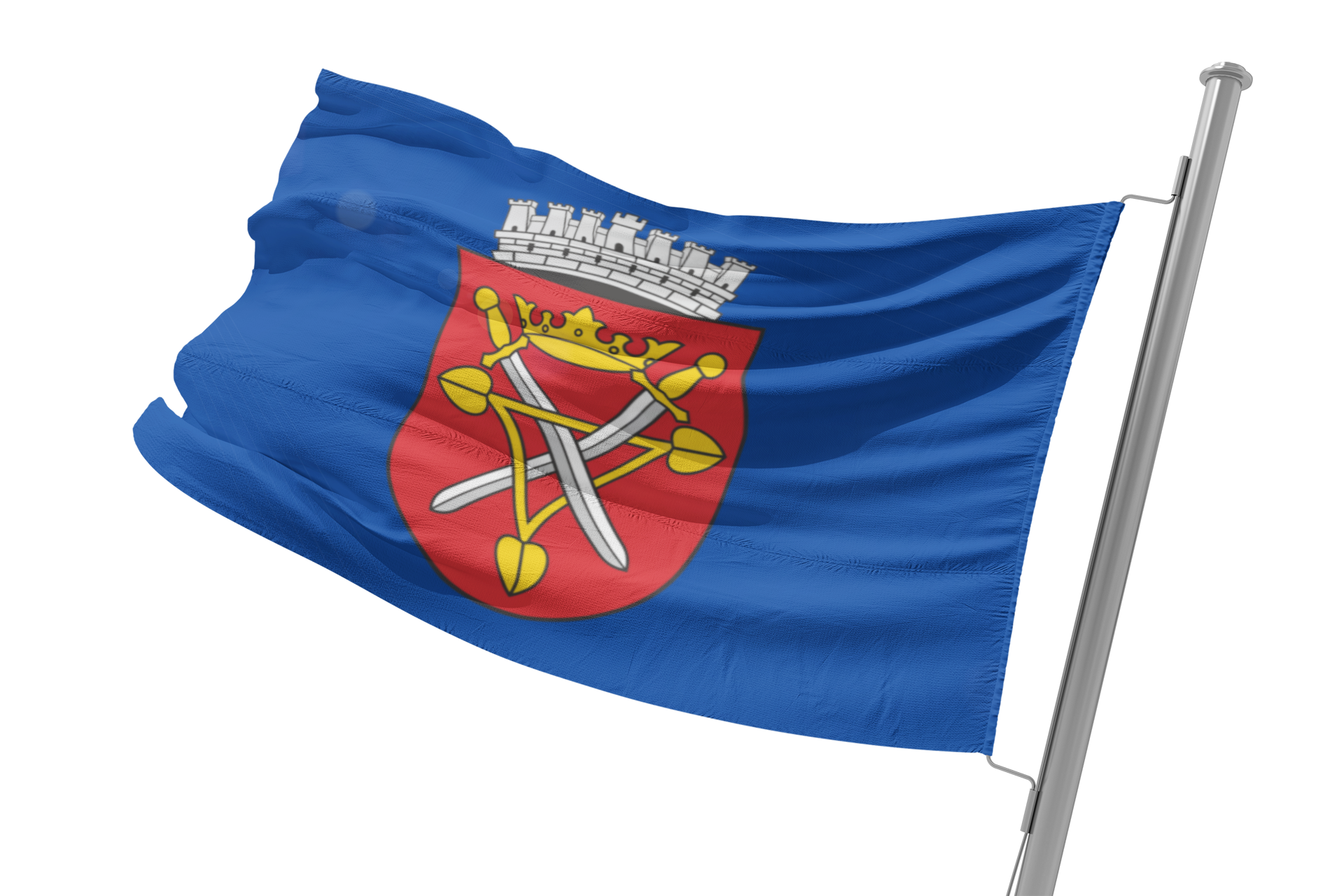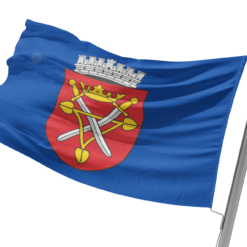Diese hochwertige Fahne zeigt das offizielle Wappen der Stadt Hermannstadt/ Sibiu/ Nagyszeben und symbolisiert die reiche Geschichte und das kulturelle Erbe der Stadt. Auf rotem Schild dargestellt, zeigt das Wappen mehrere silberne Schwerter, überragt von einer steinernen Mauerkrone mit sieben Türmen – ein Zeichen für Wehrhaftigkeit und den Rang Hermannstadts als befestigte Hochburg der Siebenbürger Sachsen. Es repräsentiert zugleich die historischen Traditionen der Stadt sowie ihre Bedeutung als Zentrum von Kultur, Handwerk und Gemeinschaft in Siebenbürgen.